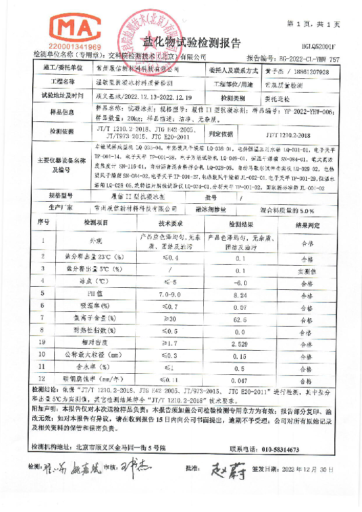 履信T-SEN溫敏型抗凝冰材料第三方CMA認(rèn)證報(bào)告